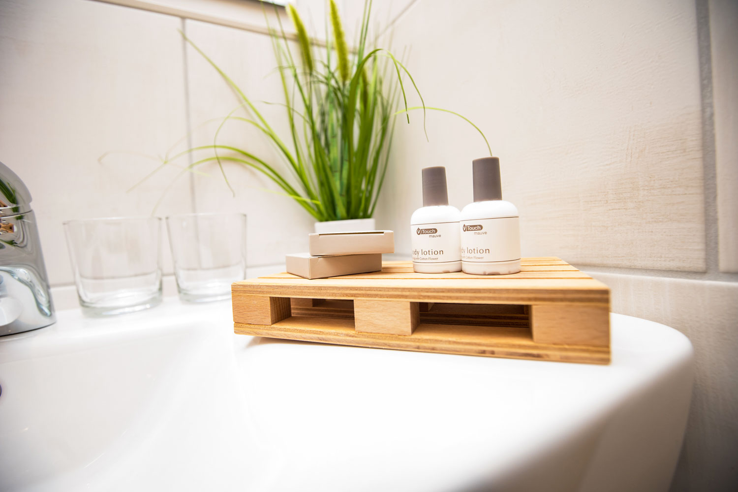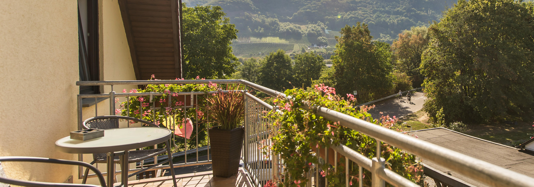 Unsere Apartments (ca. 25 m²) "Bacchus 1" mit Moselblick und "Bacchus 2" mit Berg- und Gartenblick verfügen über ein Badezimmer mit Dusche / WC und Haartrockner, Sofa, Flachbildfernseher, Schreibtisch, Wecker, Radio und Balkon. Die Zimmer sind Allergiker freundlich.